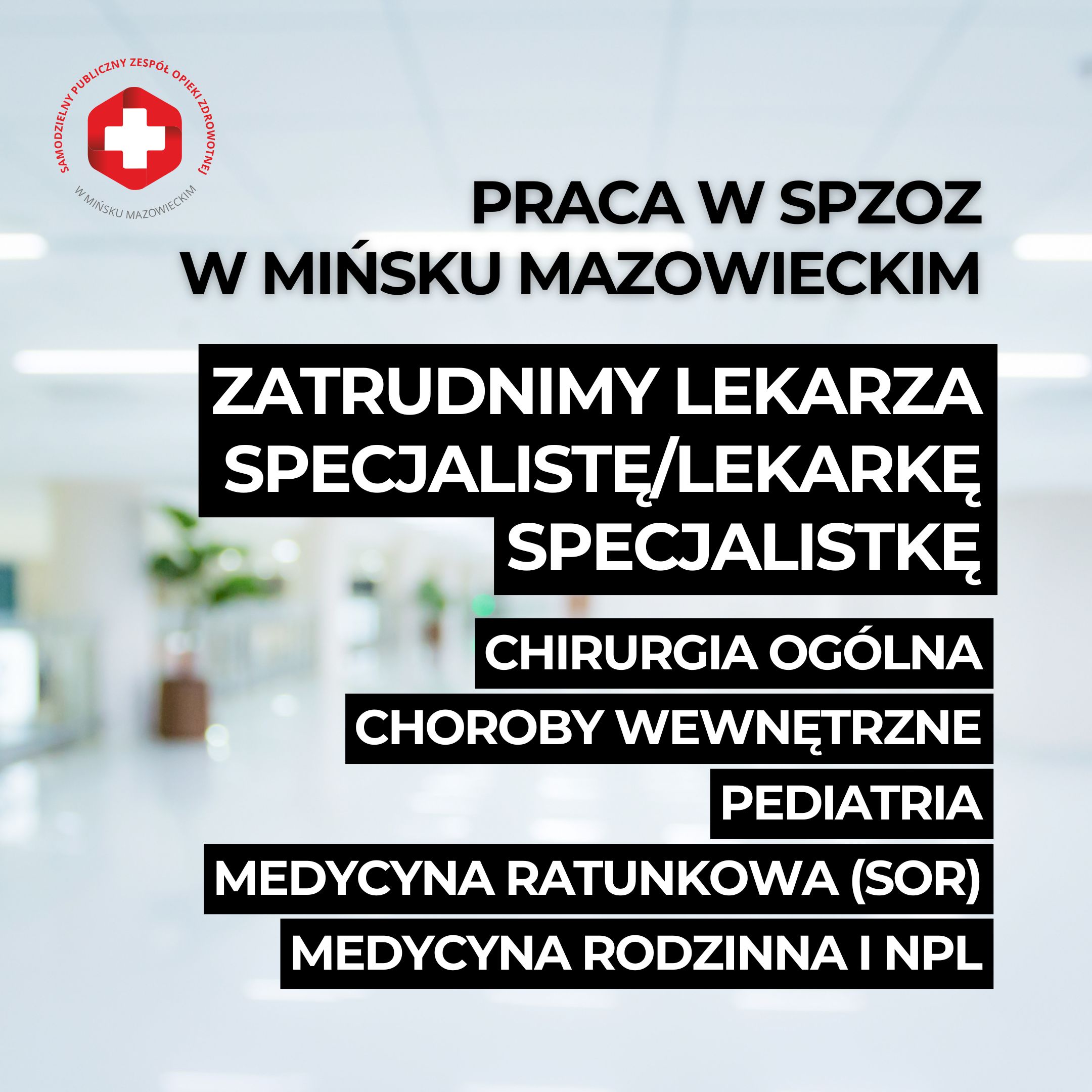 Szpital Powiatowy SPZOZ w Mińsku Mazowieckim zaprasza do współpracy!