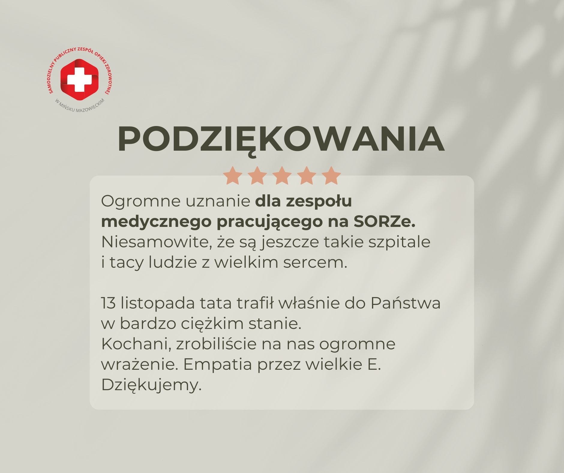 „Ogromne uznanie dla zespołu medycznego pracującego na SOR-ze. Niesamowite, że są jeszcze takie szpitale i tacy ludzie z wielkim sercem.